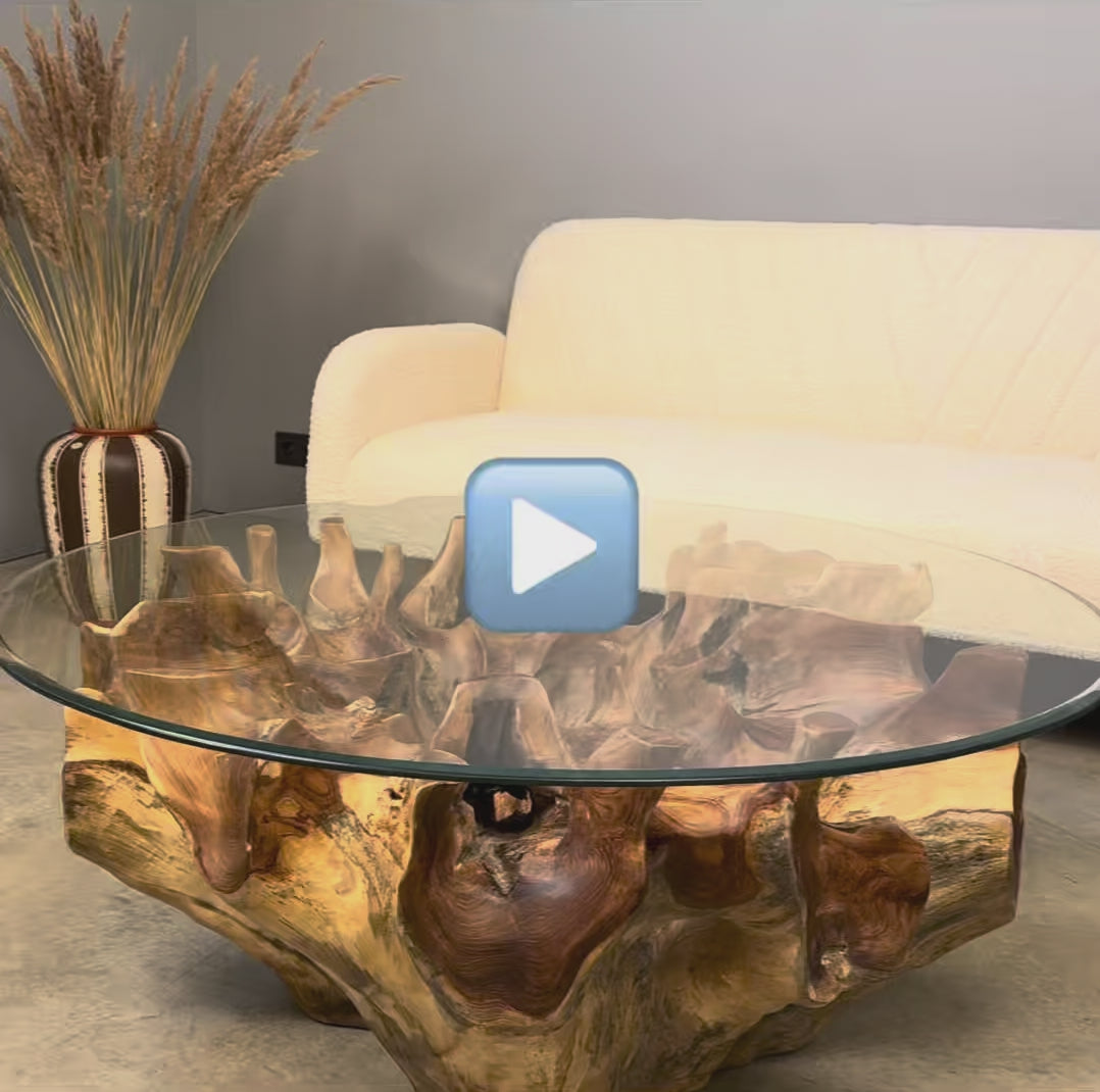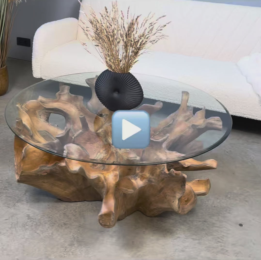 WO.35 – Round Teak Root Coffee Table with Glass Top