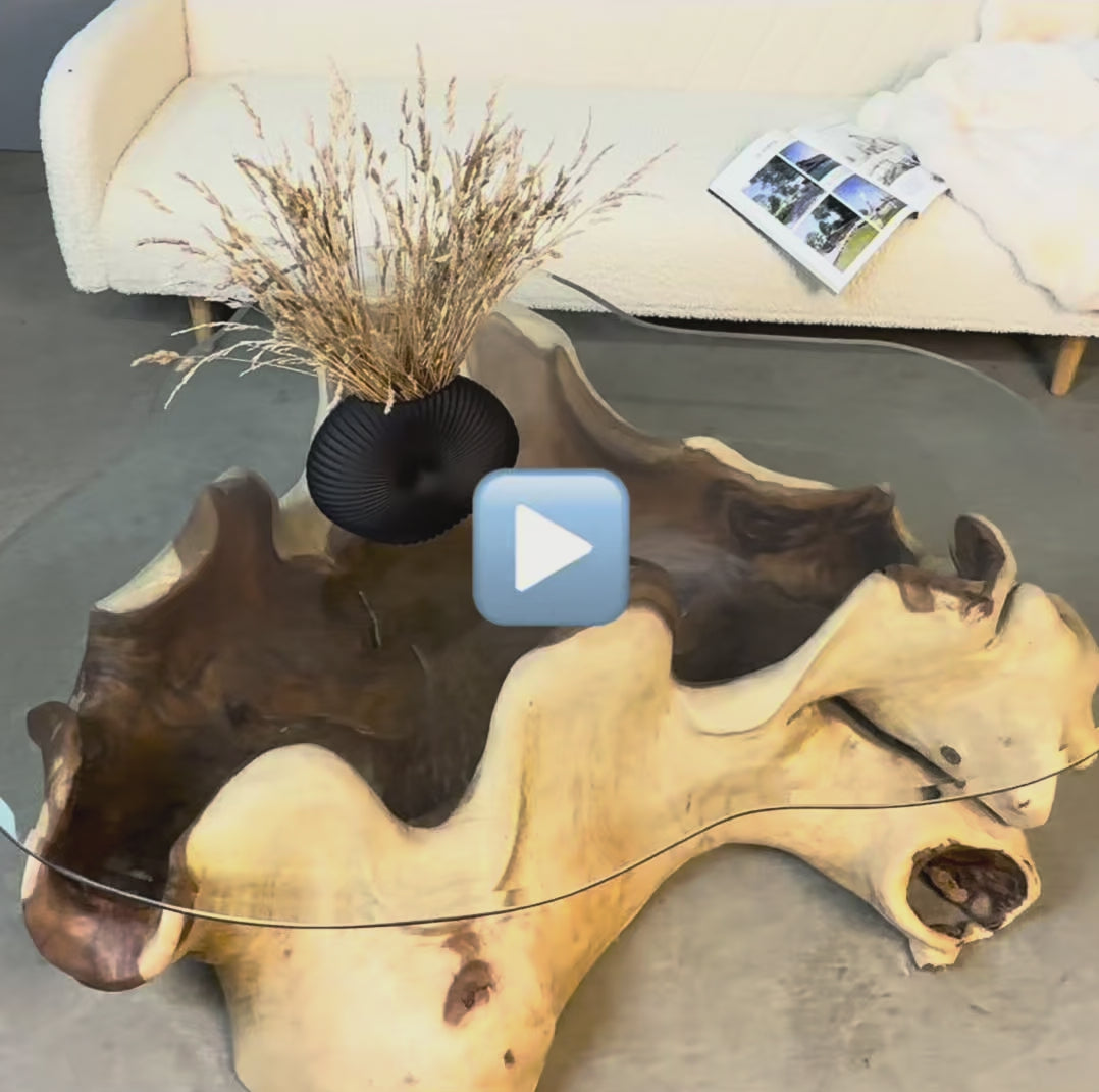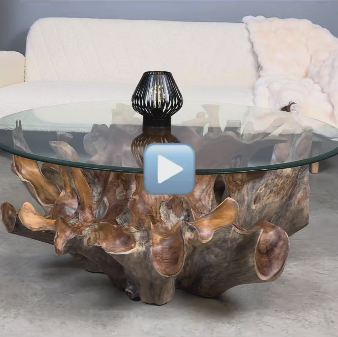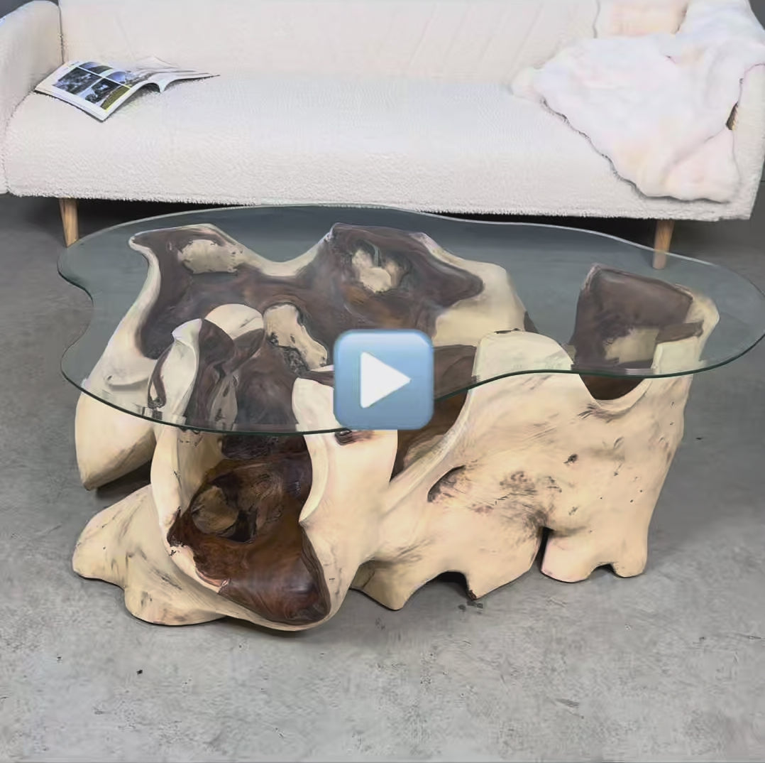 WO.35-3 Teak Root Coffee Table with Glass Top