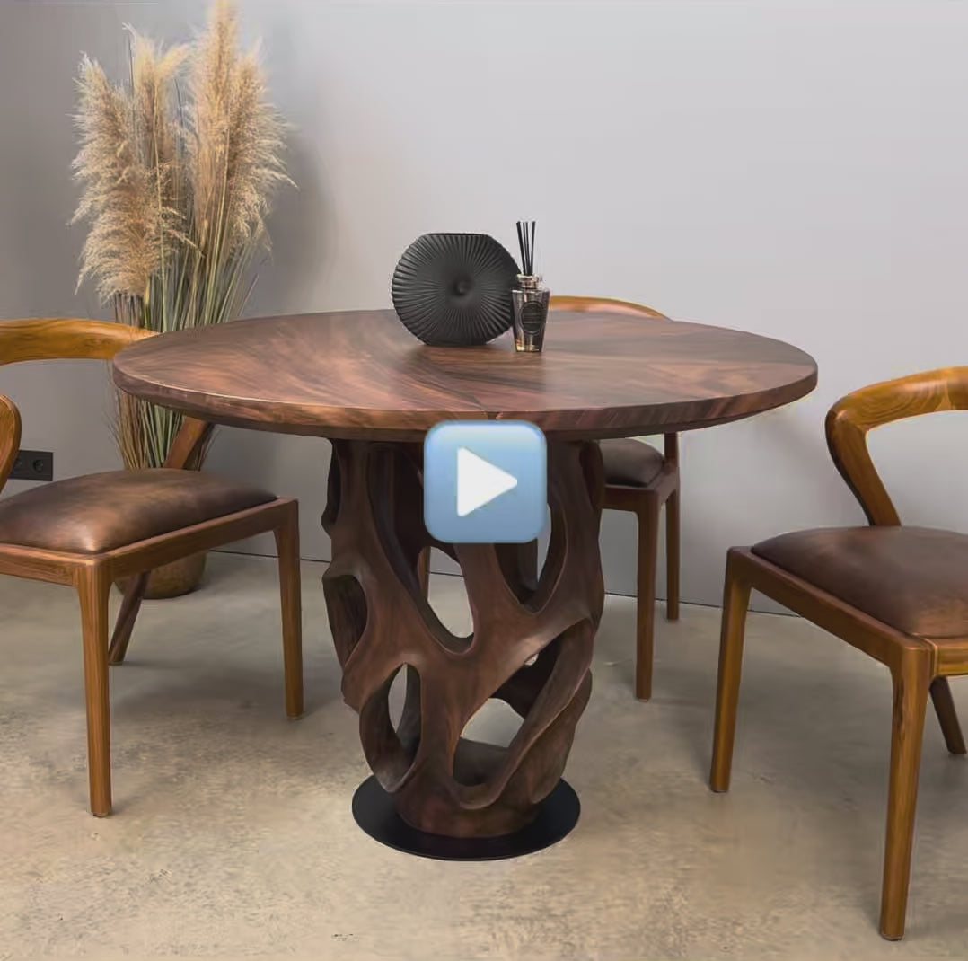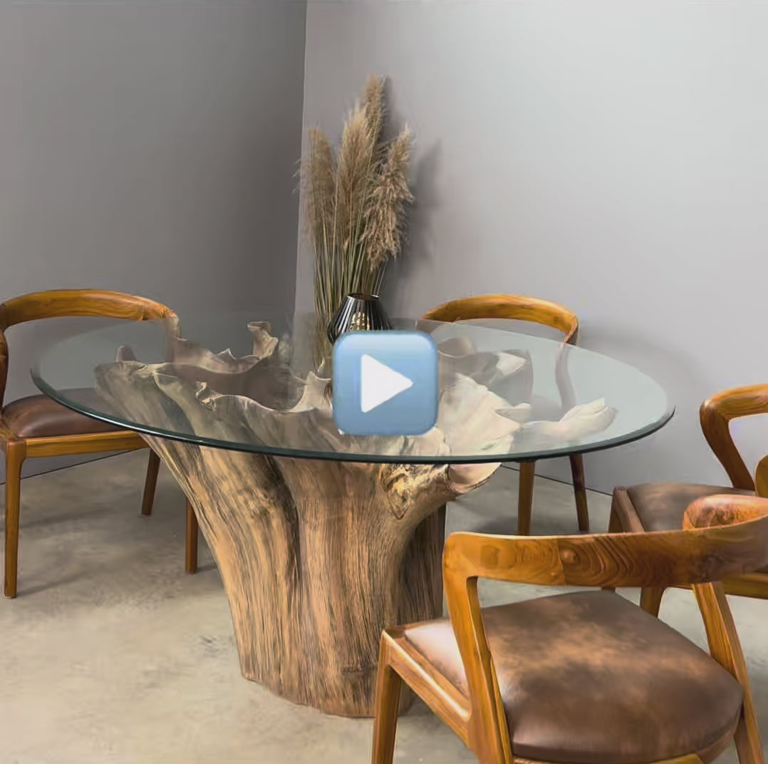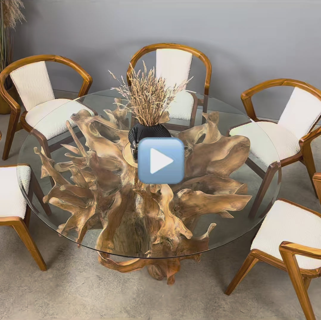 WO.3 Round Teak Root Dining Table with Clear Glass