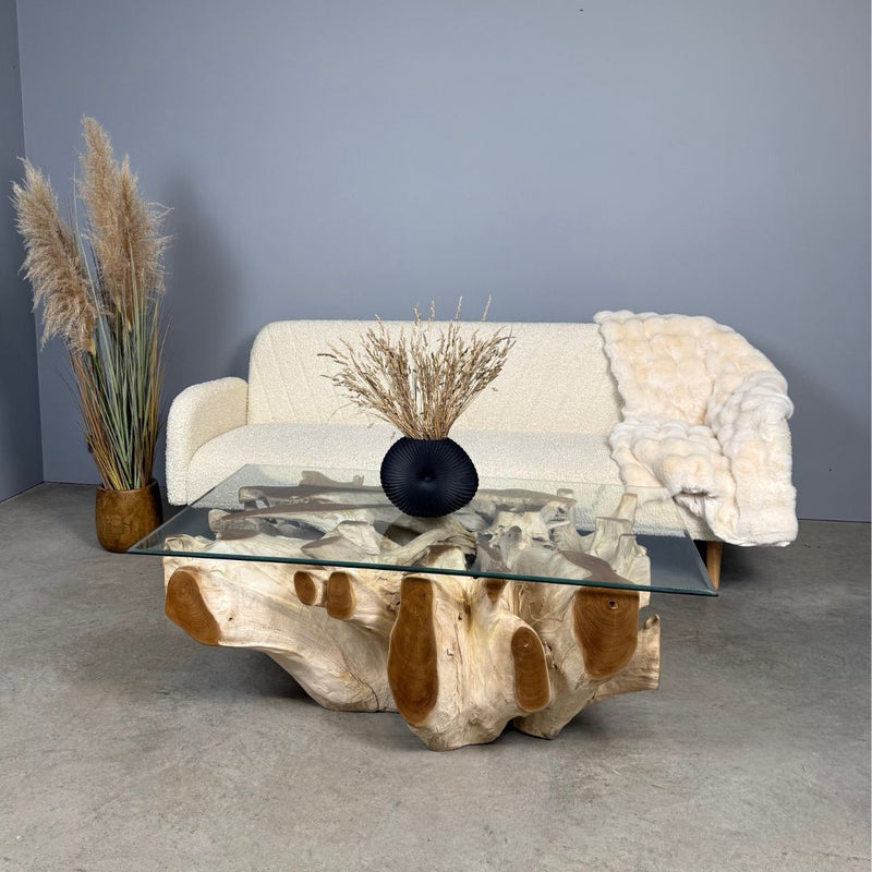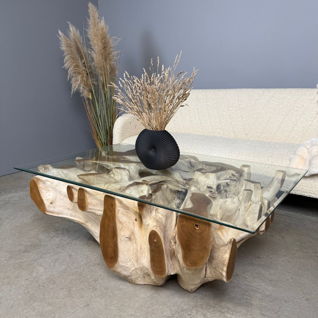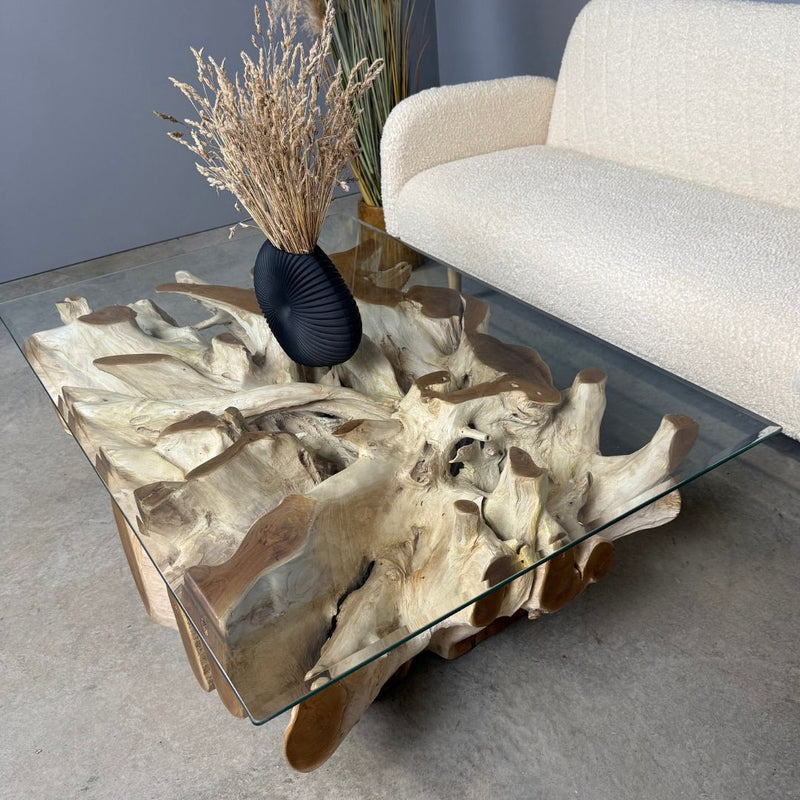 WO.6-1 Kavos staliukas iš tikmedžio šaknies su stiklu